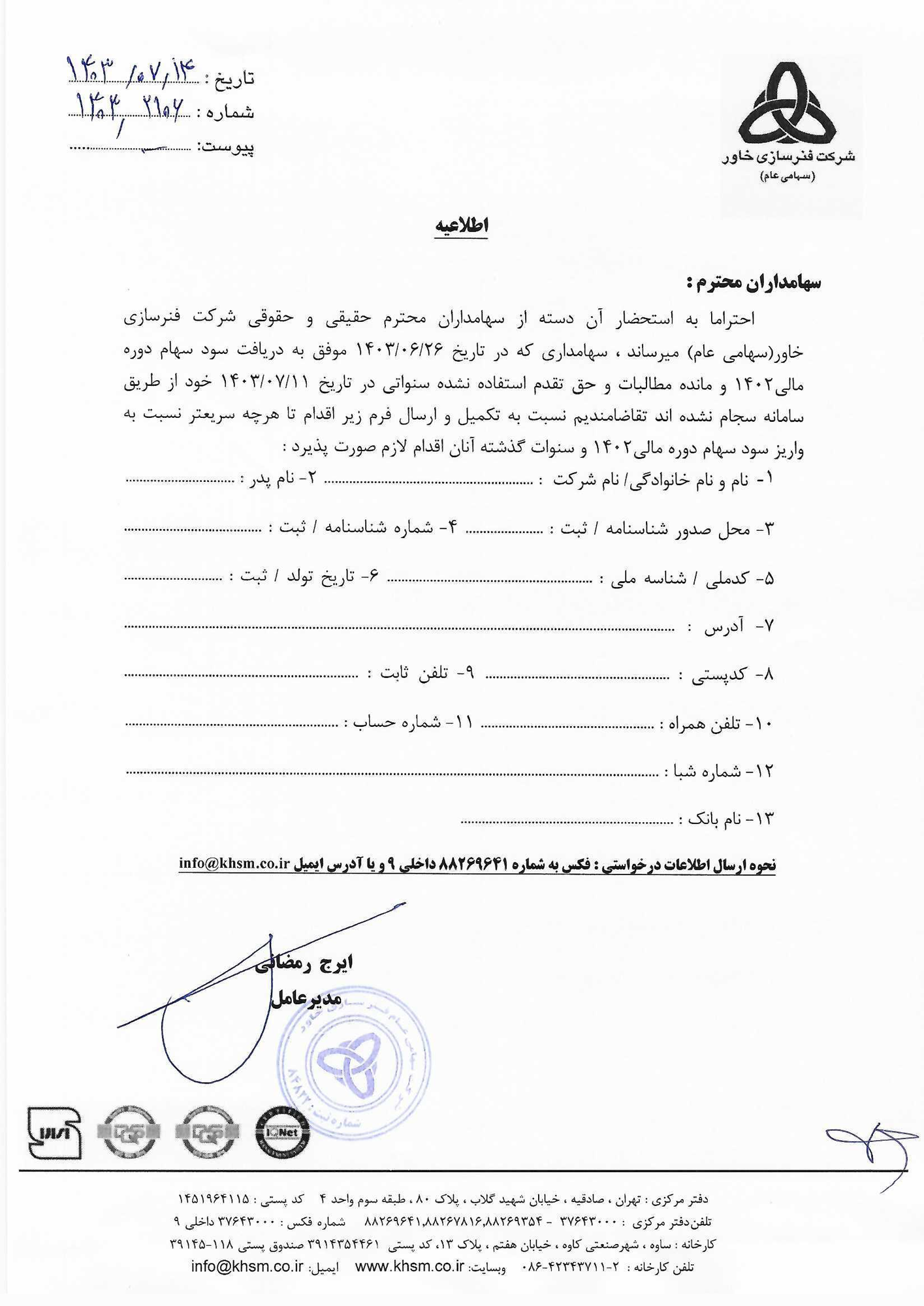 جدول زمانبندی پرداخت سود سهام دوره مالی 1403
