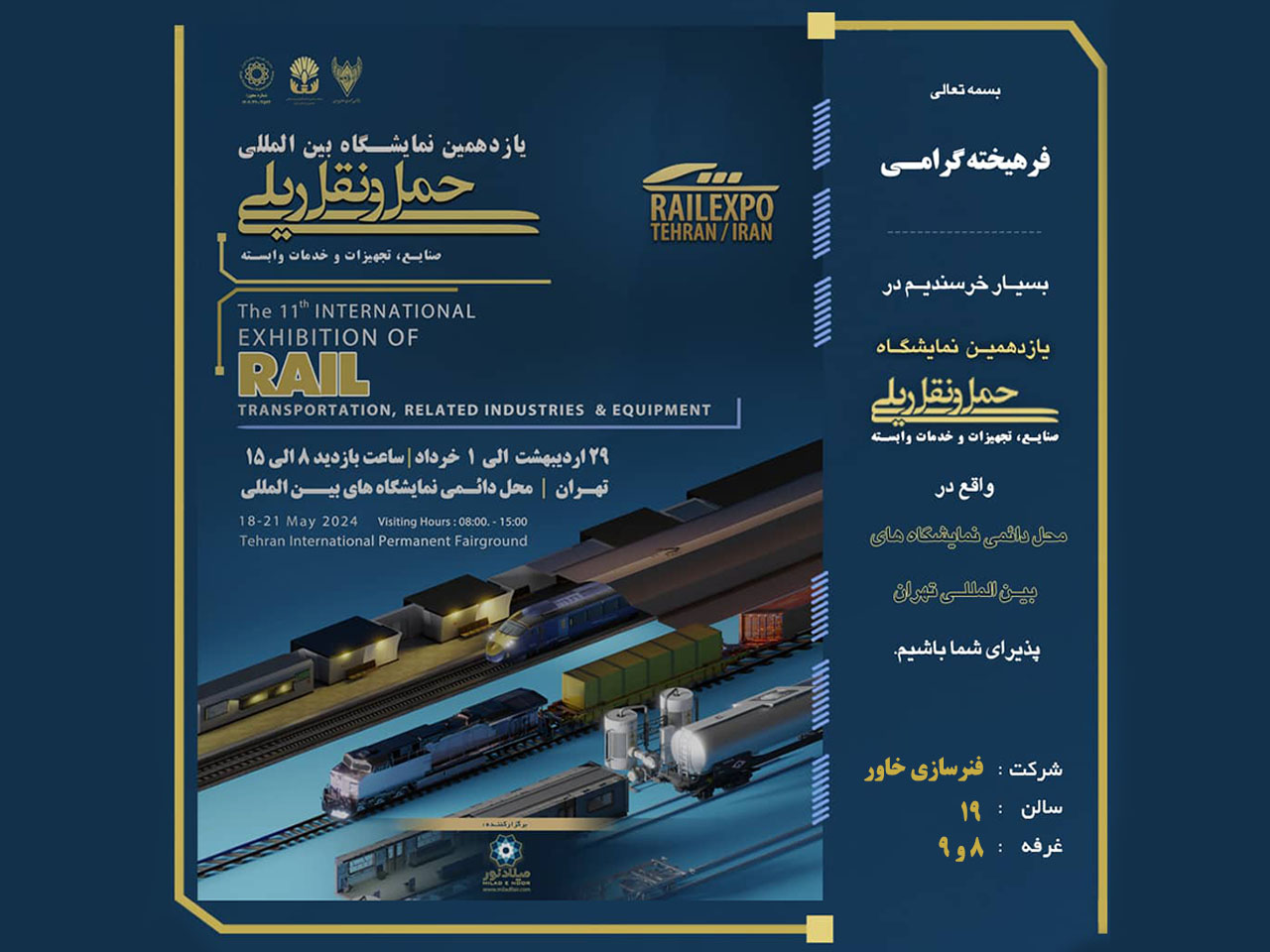 یازدهمین نمایشگاه بین المللی حمل و نقل و صنایع ریلی تهران از تاریخ 29 اردیبهشت الی 1 خرداد در محل نمایشگاههای بین المللی تهران بر گزار شد و ما در سالن 19 غرفه 8 و 9 پذیرای مقدم گرامی شما عزیزان بودیم.
