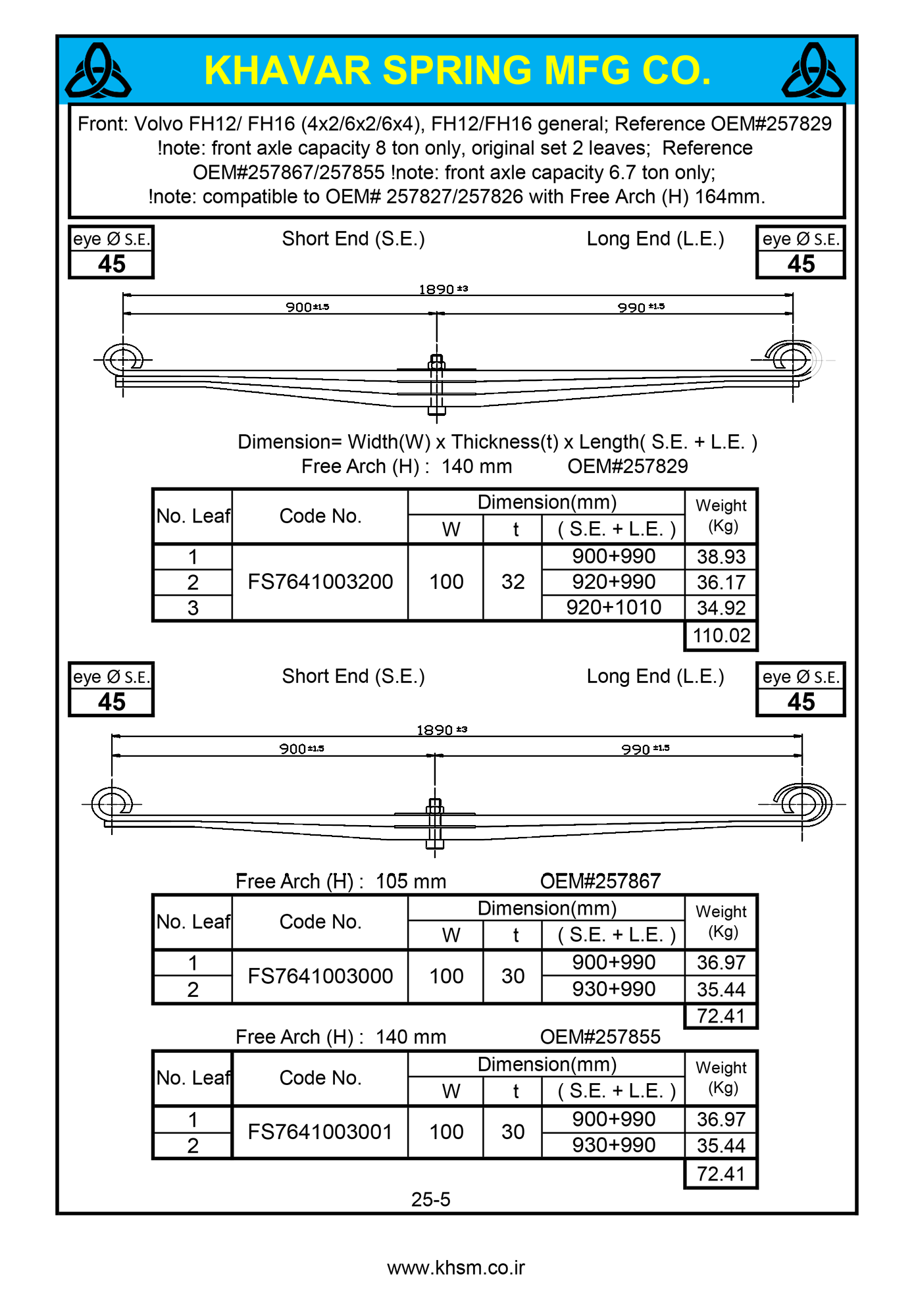 | طول لبه بلند (LE) فنر تخت | |
