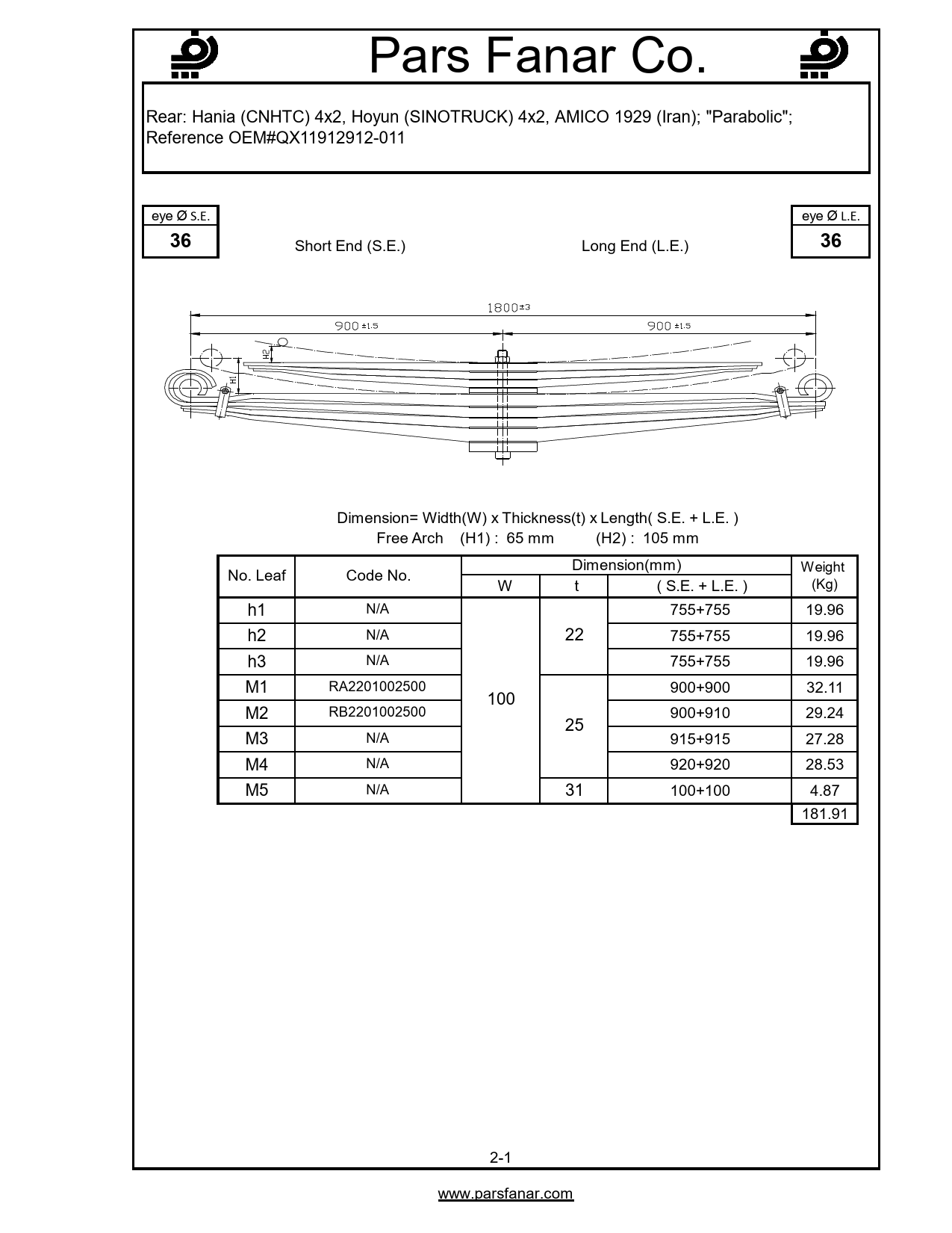 | قوس آزاد (H) فنر تخت | 105 |