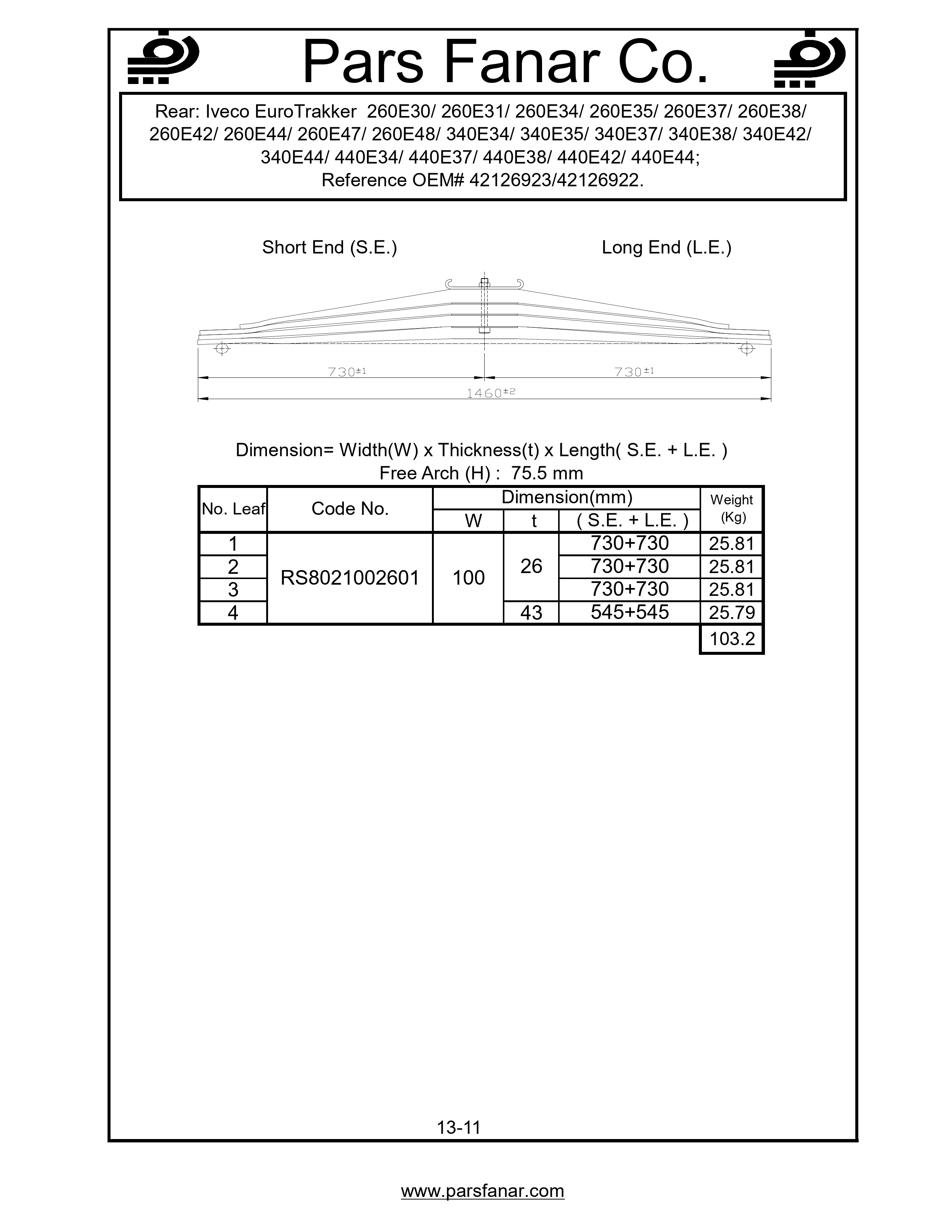 دست فنر پارابولیک چرخ عقب IVECO EuroTrakker