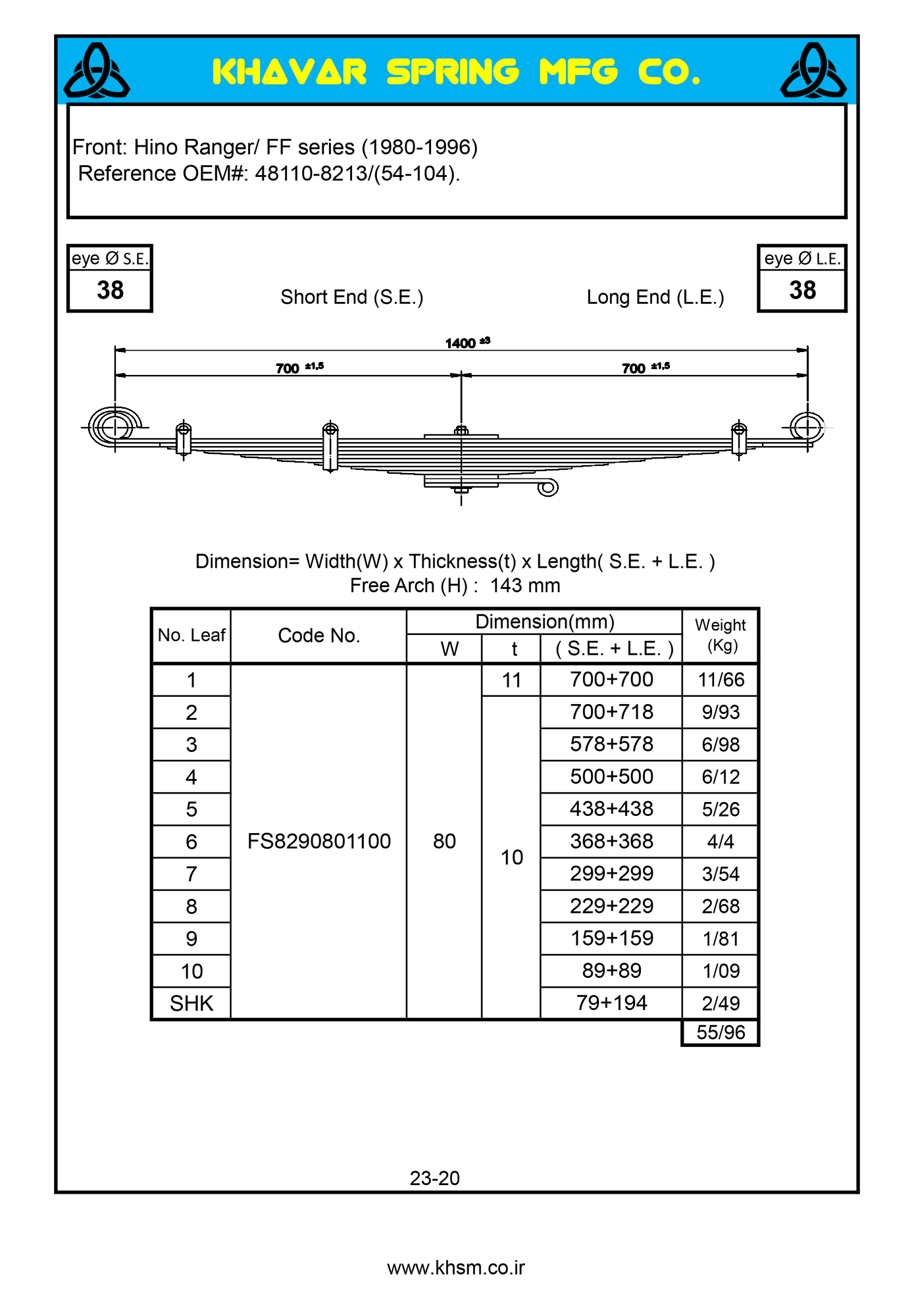 | تعداد لایه های اصلی (M) فنر تخت | |