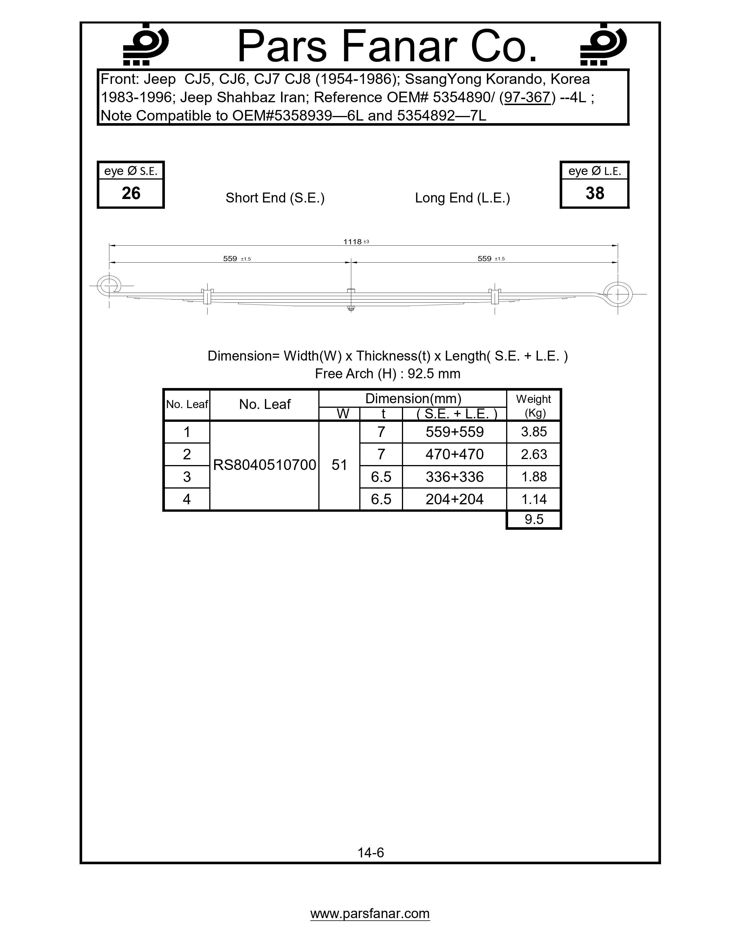 | تعداد لایه های اصلی (M) فنر تخت | |