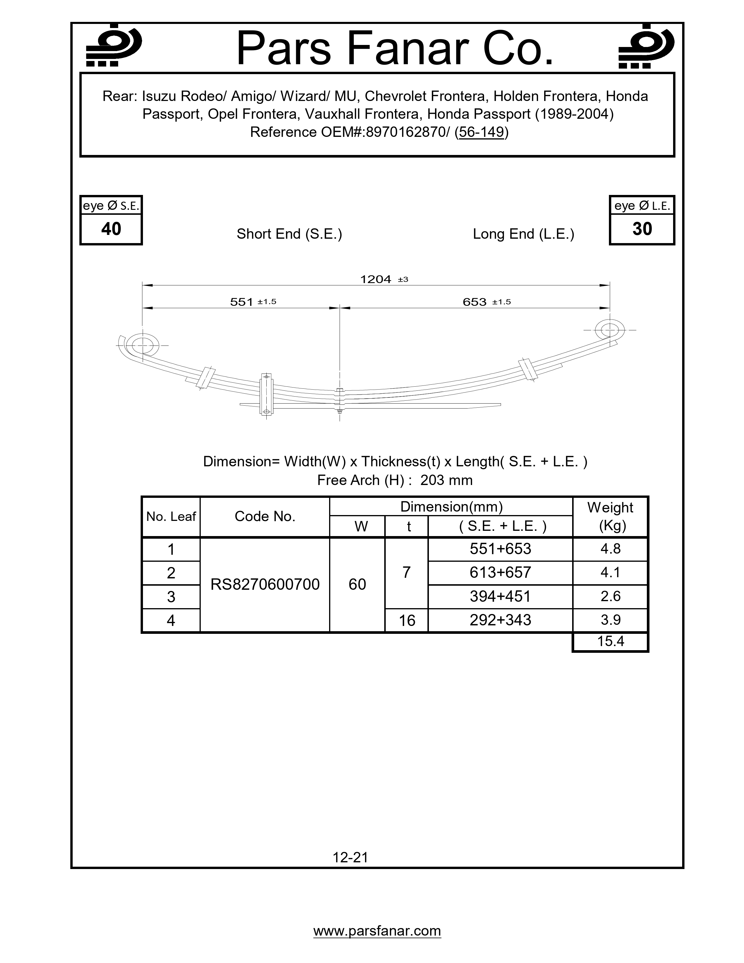 | نام خودرو/کابین/تریلی | Chevrolet Frontera, Holden Frontera, Honda Passport, Honda Passport (1989-2004), Isuzu Rodeo/ Amigo/ Wizard/ MU, Opel Frontera, Vauxhall Frontera |