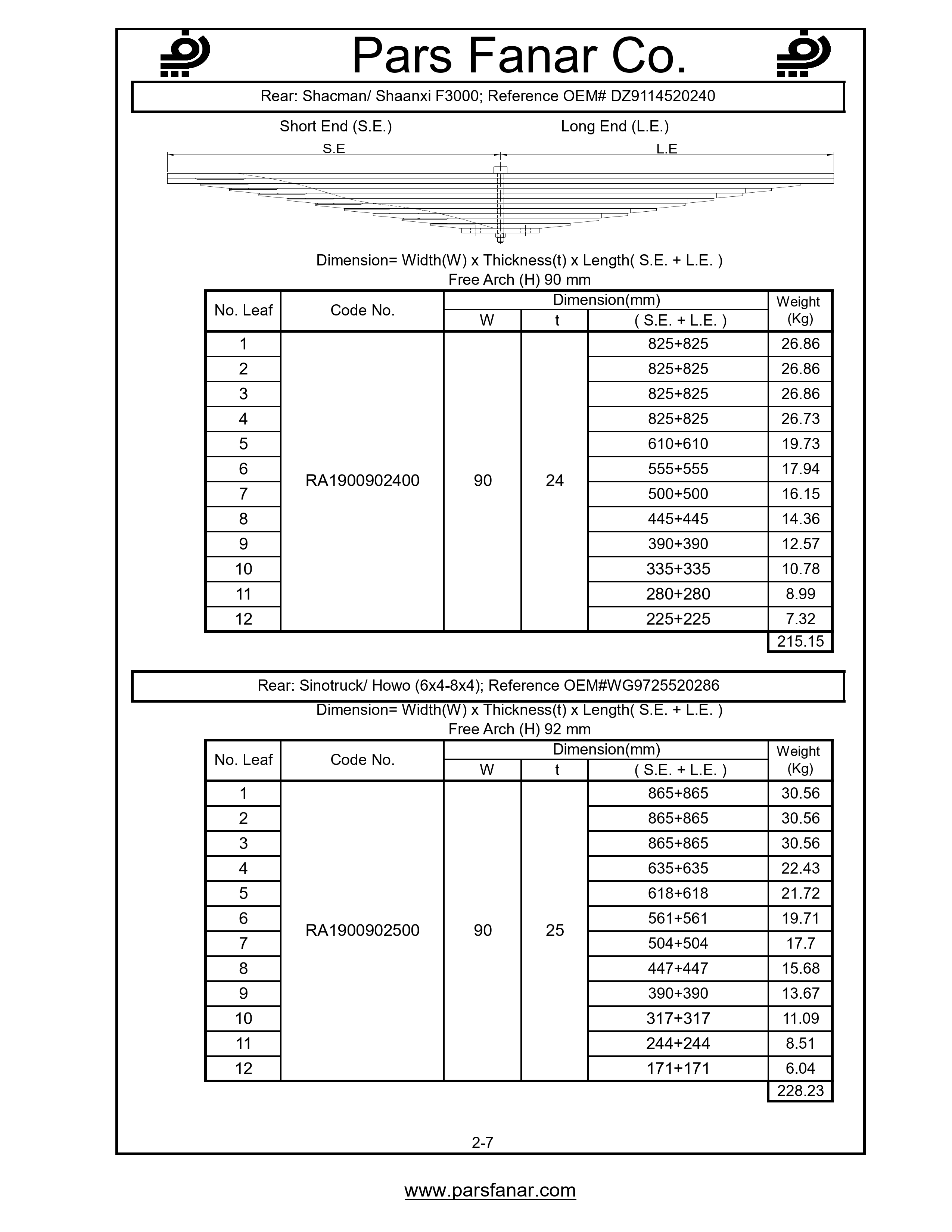| تعداد لایه های اصلی (M) فنر تخت | |