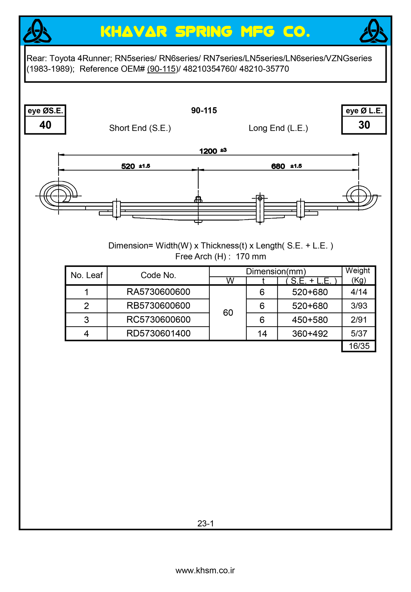 Reference OEM# (90-115)/ 48210354760/ 48210-35770