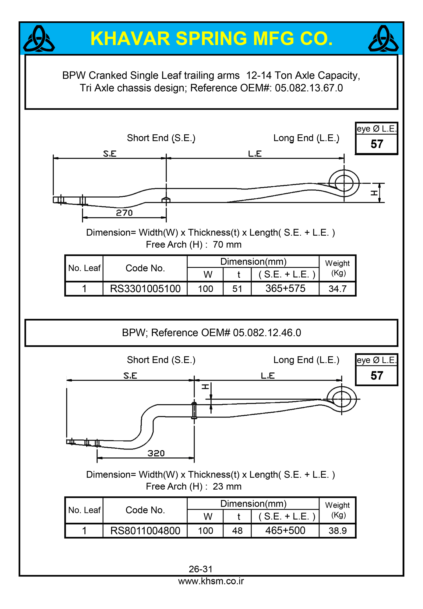 | نام خودرو/کابین/تریلی | BPW Cranked Single Leaf trailing arms 12-14 Ton Axle Capacity |